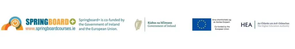 This course is free / funded under the Springboard+ initiative. Springboard+ is co-funded by the Government of Ireland and the European Union.