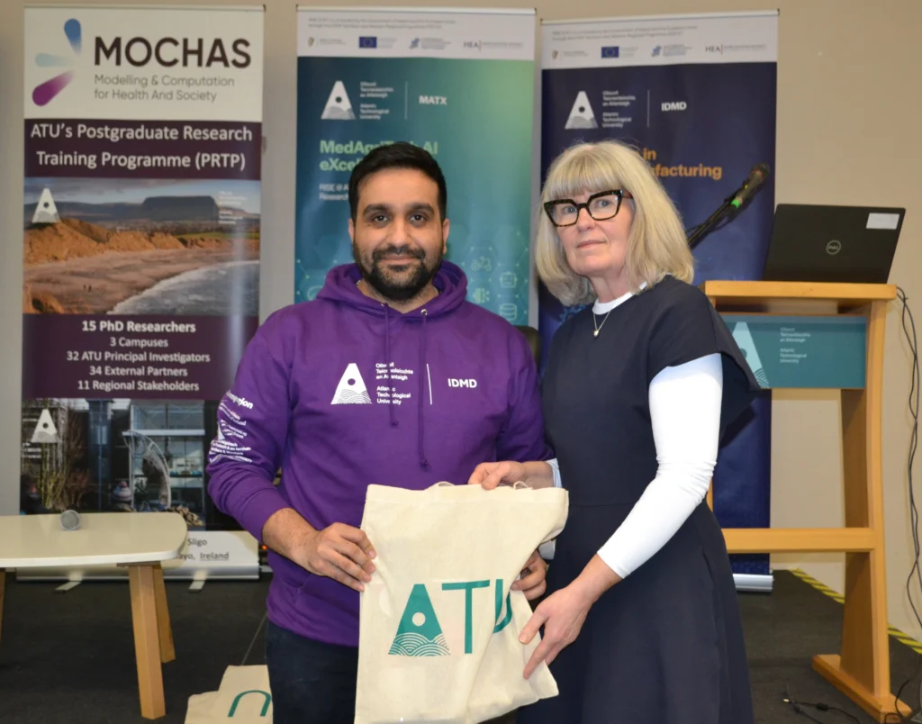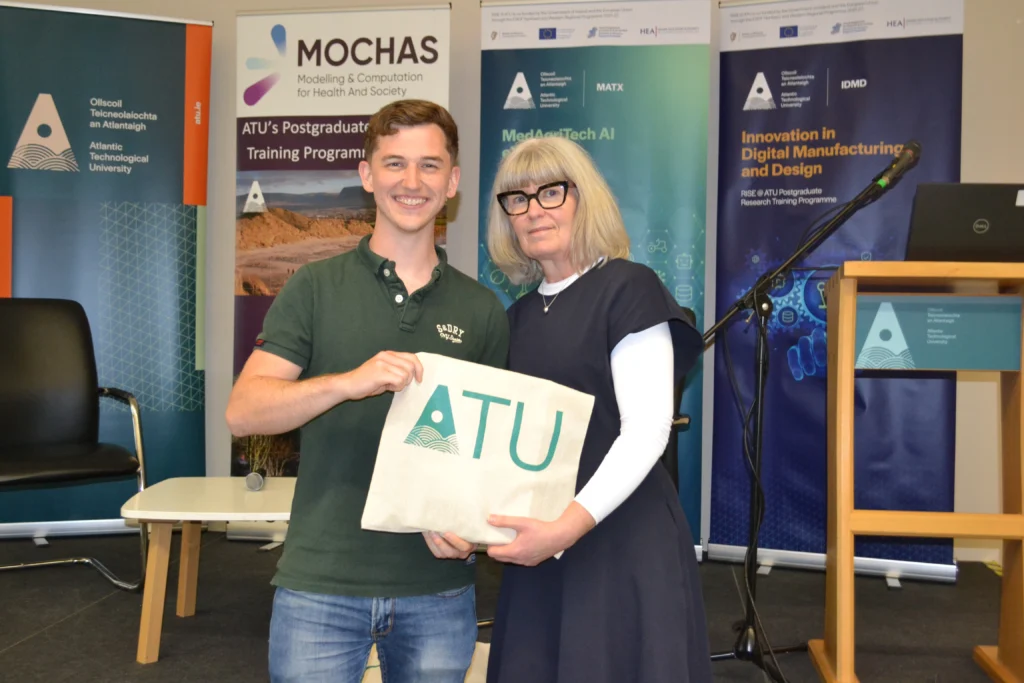 The symposium, held at ATU Sligo, was hosted by the MedAgriTech AI eXcellence (MATX) and Innovation in Digital Manufacturing and Design (IDMD) Postgraduate Research Training Programmes. They were joined by researchers from the Modelling and Computation for Health and Society (MOCHAS). Altogether, 27 PhD researchers presented projects spanning multiple disciplines.